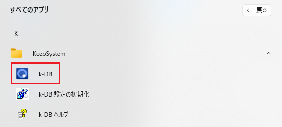 [すべてのアプリ]→[KozoSystem]→[k-DB]を選択します。