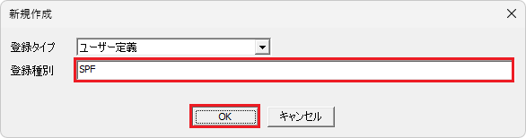 下記のデータを入力し、[OK]ボタンをクリックします。