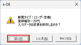 [はい]ボタンをクリックします。