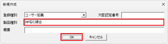 📝ユーザー定義の製品種別番号は、k-DBの登録状況により異なる場合があります。