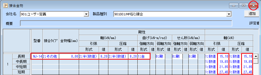 本テキストで使用するMPねじ接合の材質・接合金物は、k-DBに登録されていませんので追加します。