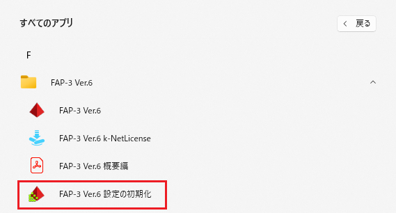 [すべてのアプリ]→[FAP-3 Ver.6]→[FAP-3 Ver.6 設定の初期化]を選択します。