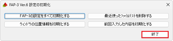 [FAP-3の設定をすべて初期化する]ボタンをクリックします。