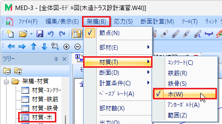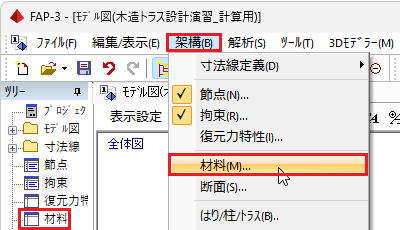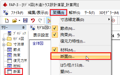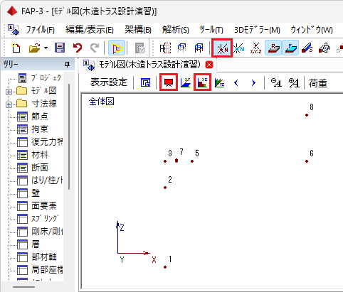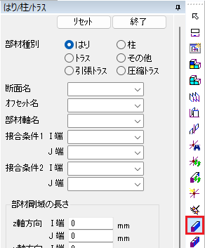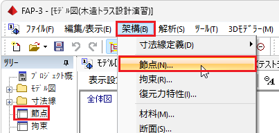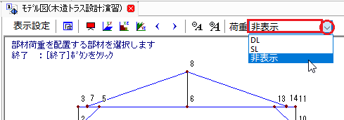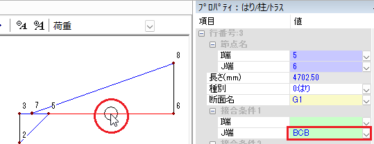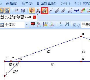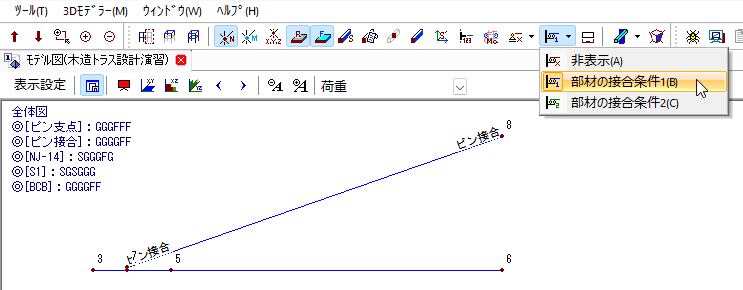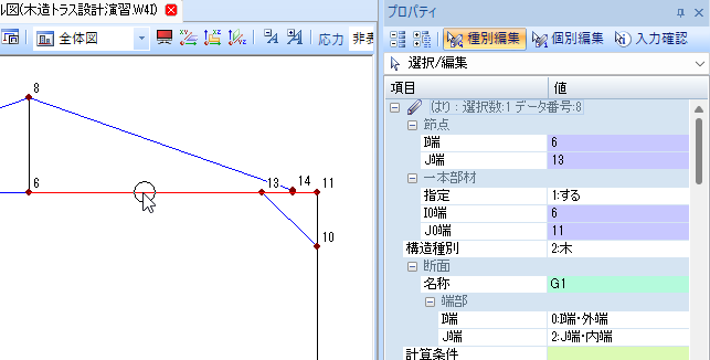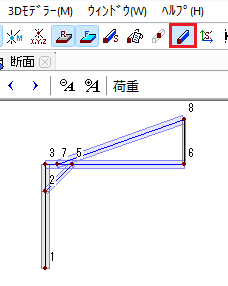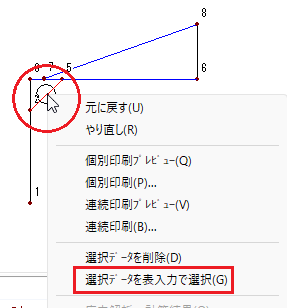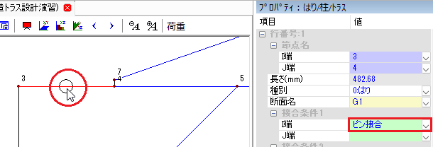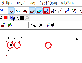 📝一本部材を選択するときは、始端の節点に接続する位置でクリックすると選択できます。