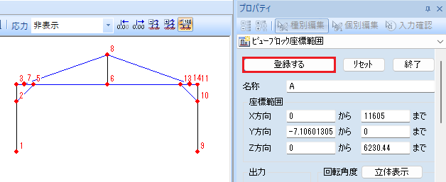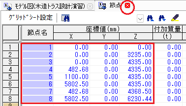 グリッドシートに座標を入力して節点を作成します。