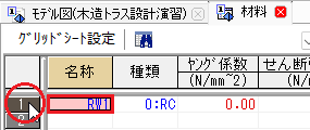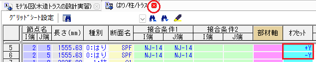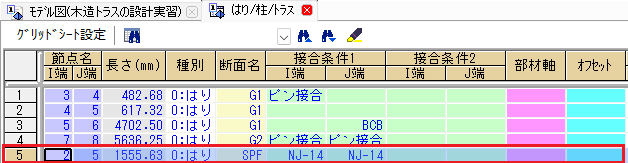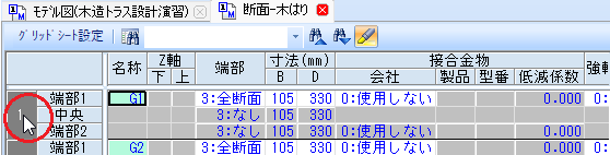 [はり]グリッドシートが表示され、該当するはりが選択状態となります。