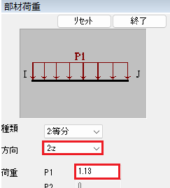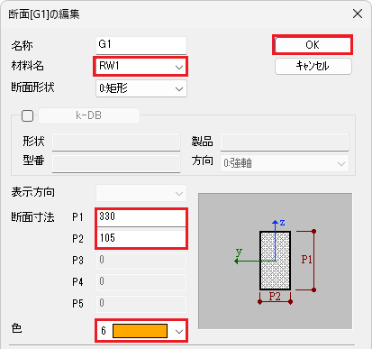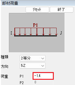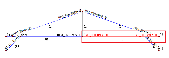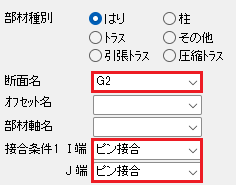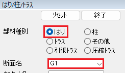 はりG1はI端にTH33(PBH)、J端にTH33(BCB)を配置しました。