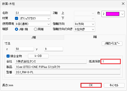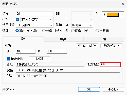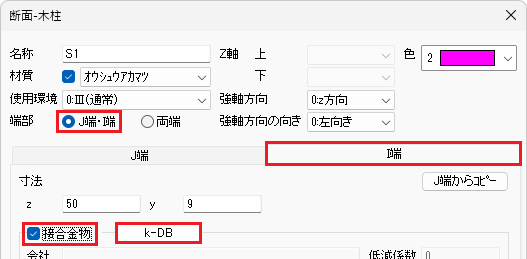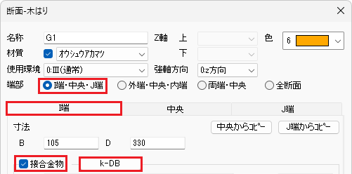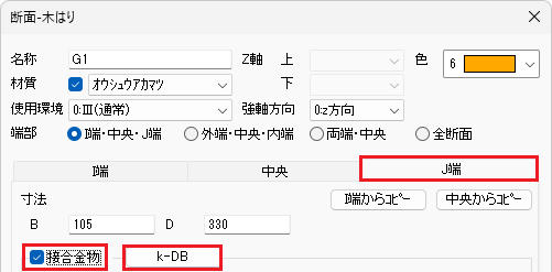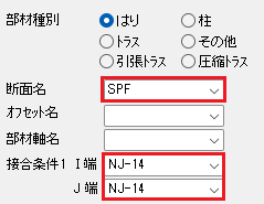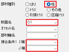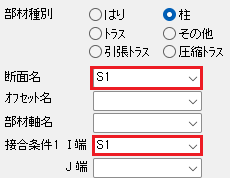 下記の断面のI端に接合金物を入力します。
