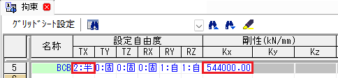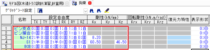 接合金物の剛性と耐力を登録します。