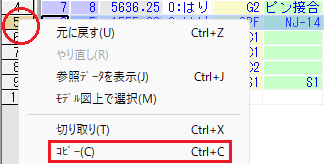 [はり]グリッドシートが表示され、該当する柱が選択状態となります。