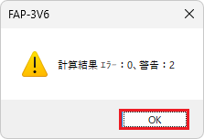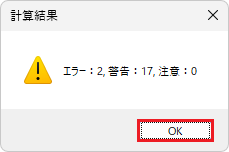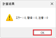 警告、エラーが無く断面計算が終了しました。