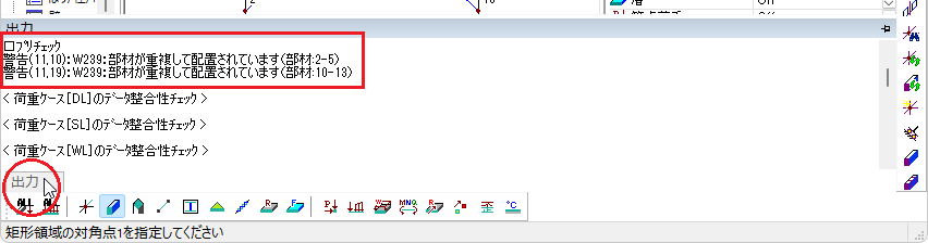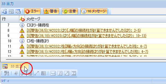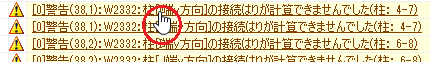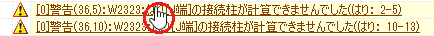 メッセージウィンドウで[W2332:柱[○端○方向]...]の行をダブルクリックします。