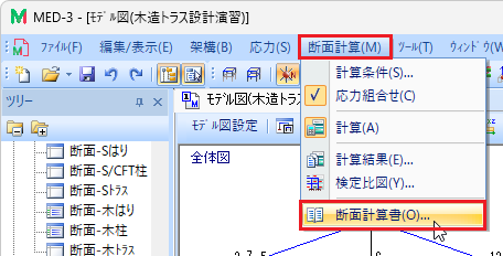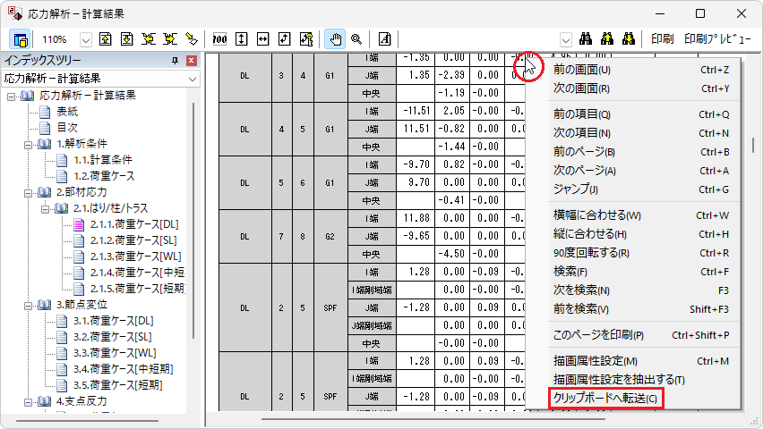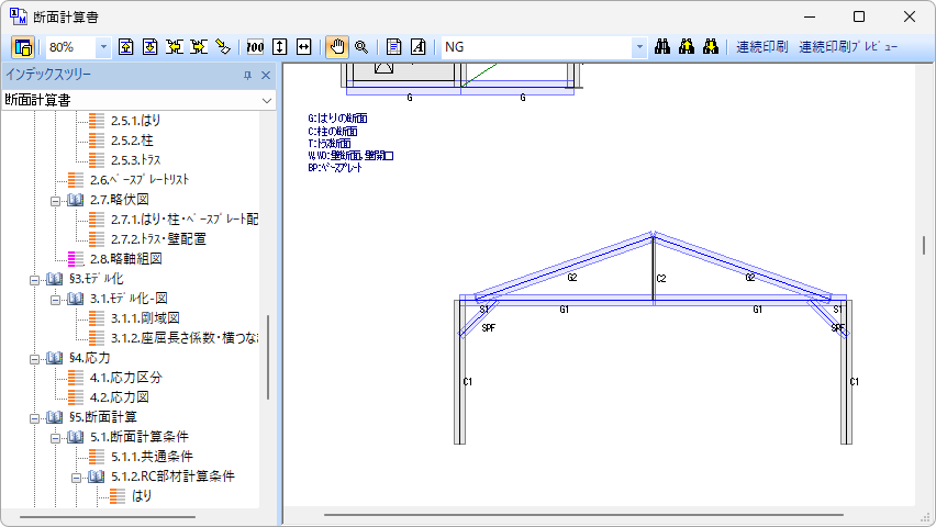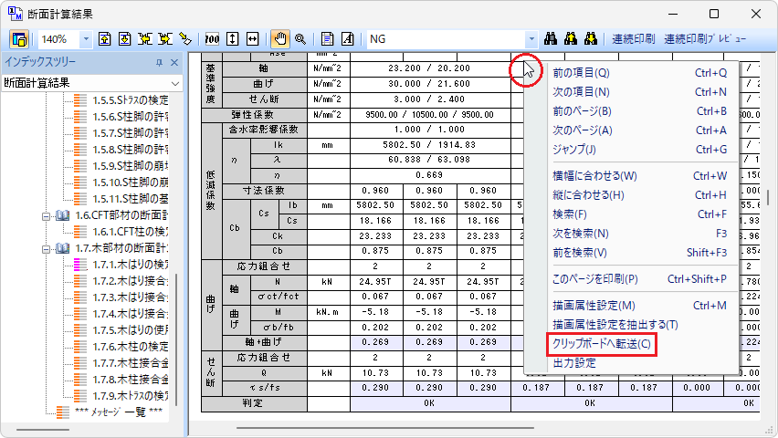 出力ウィンドウに断面計算書が表示されます。