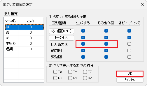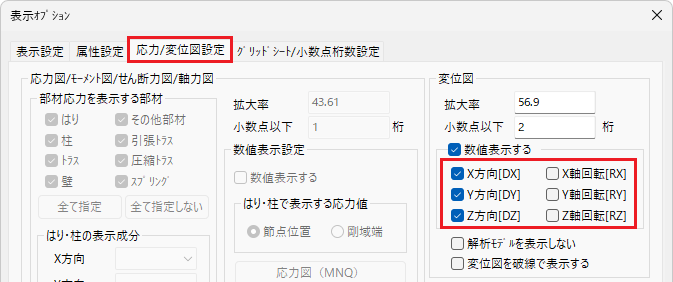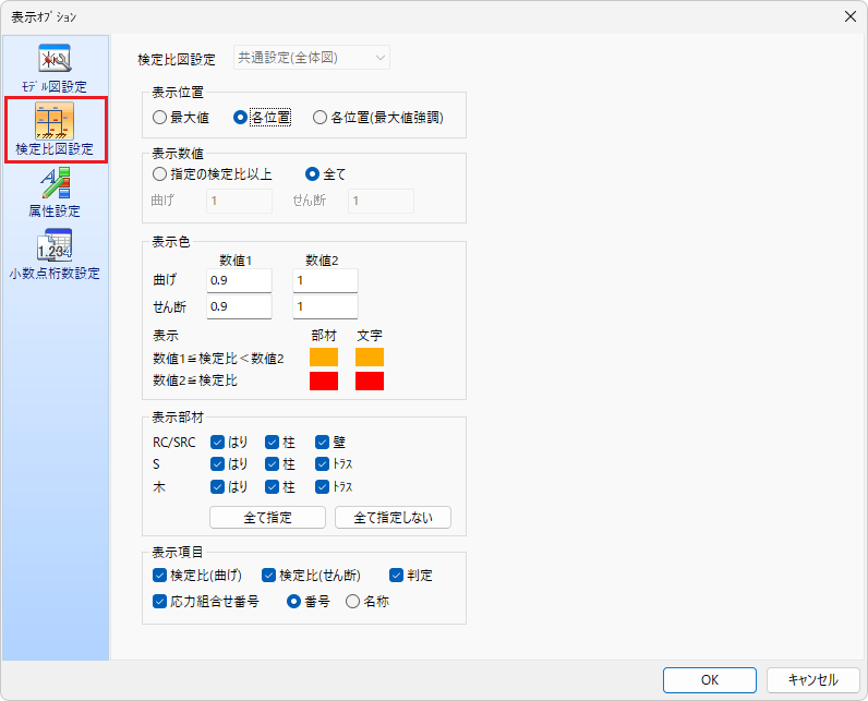 モデルウィンドウの[検定比図設定]ボタンをクリックして表示される[表示オプション]ダイアログで行います。