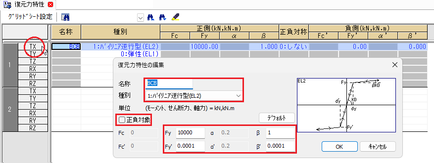 | 剛性-軸-引張、圧縮 | 剛性-曲げ-強軸方向 | 耐力-軸-引張、圧縮 | ||||||