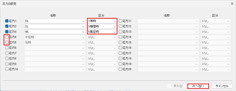 応力組合せを定義します。