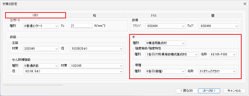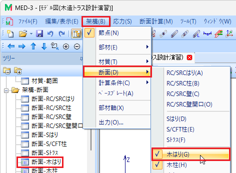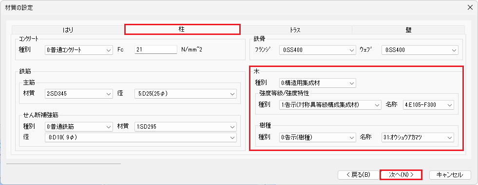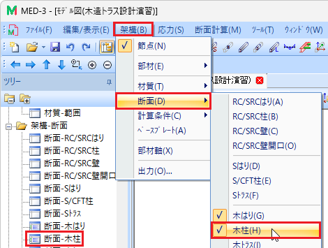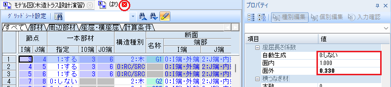 木造の場合、省略値では断面計算位置は軸心位置なので、自動生成する必要はありません。