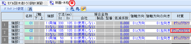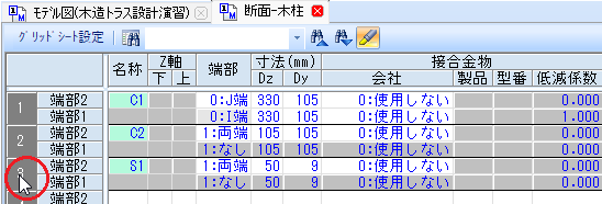 [柱]グリッドシートが表示され、該当する柱が選択状態となります。