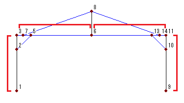 ここでは、架構の片側の節点を配置します。