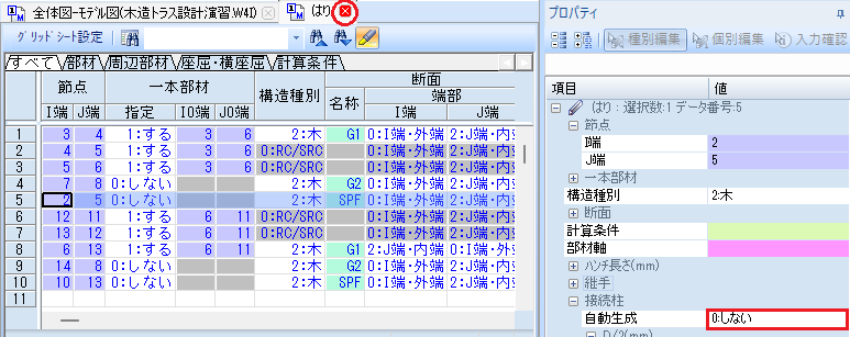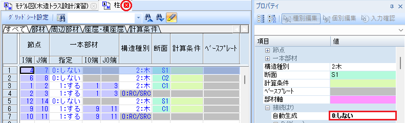 はりと同様に、木造の場合は接続はりを自動生成する必要はありません。