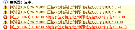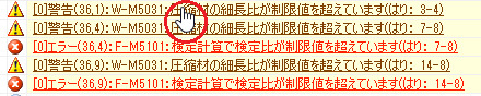メッセージウィンドウで[W-M5031:圧縮材の細長比が...]の行をダブルクリックします。