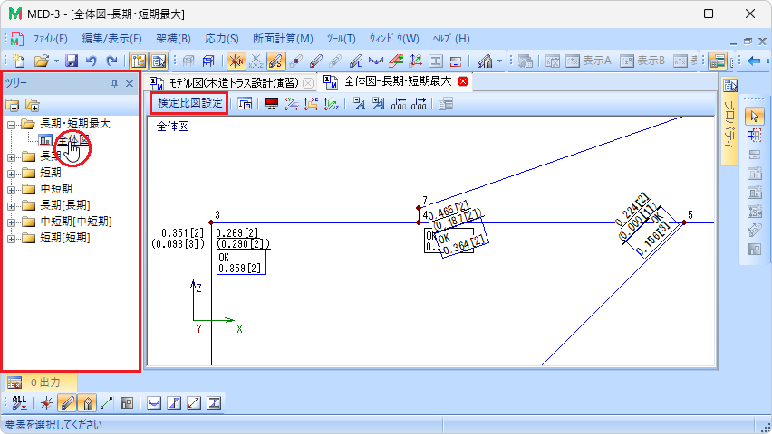 モデルウィンドウに検定比図が表示されます。