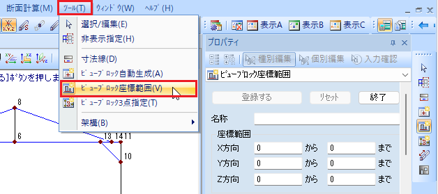 断面計算書に軸組図や検定比図を表示させるには、ビューブロックの登録が必要です。