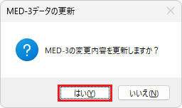 MED-3で行った変更内容を反映するか確認するダイアログが表示されます。