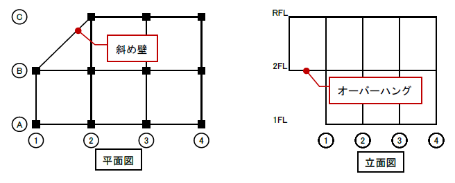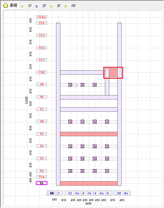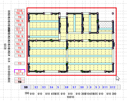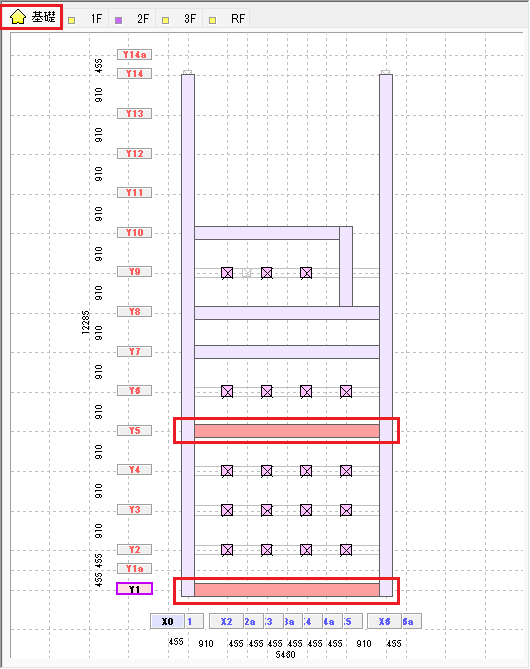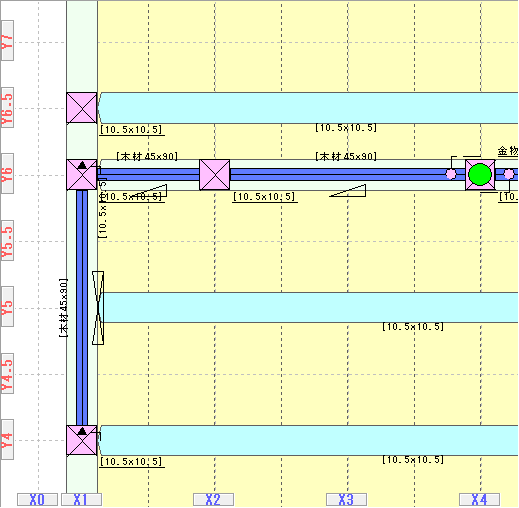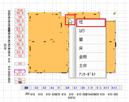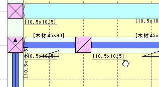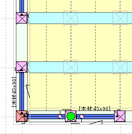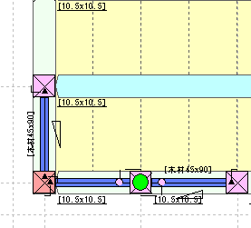 部材や見付面積範囲などを配置し、伏図、小屋伏図、見付面積図を書き込む作業エリアです。
