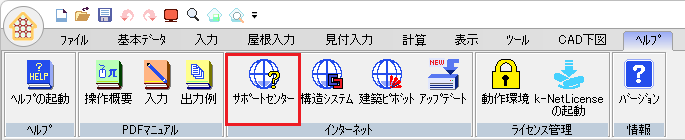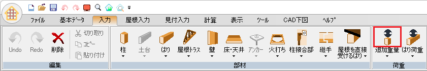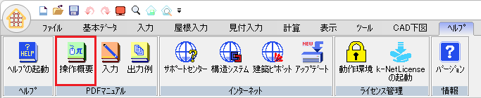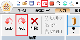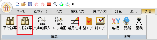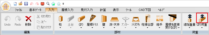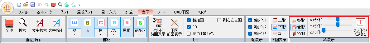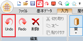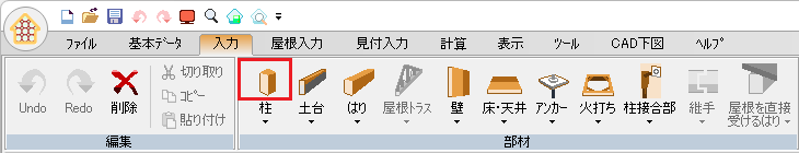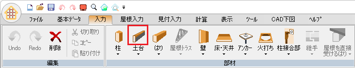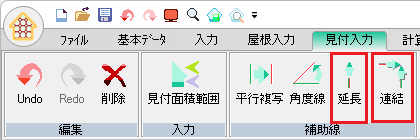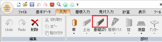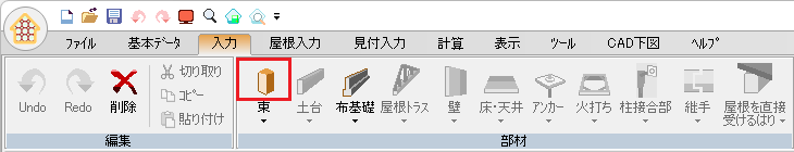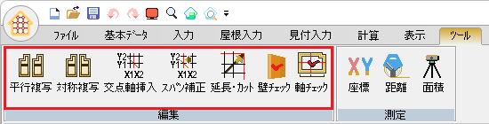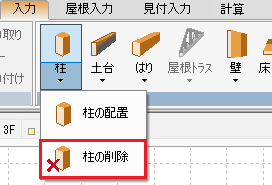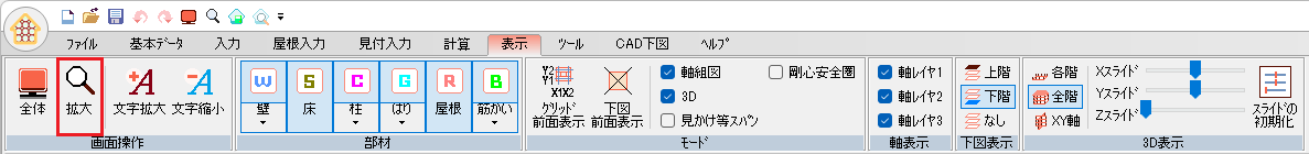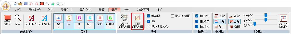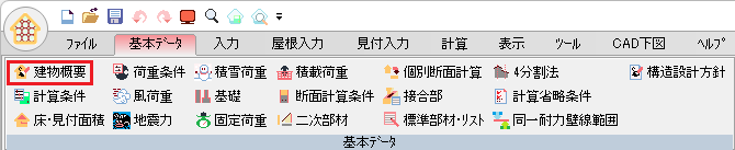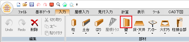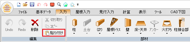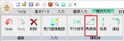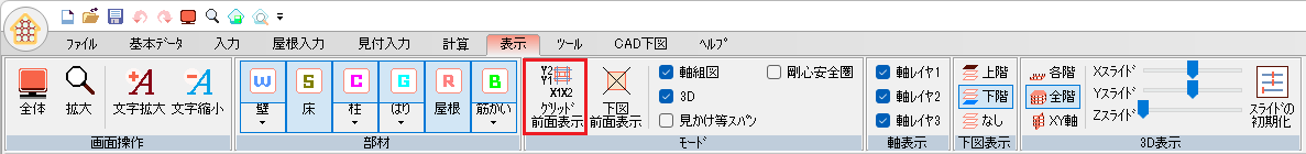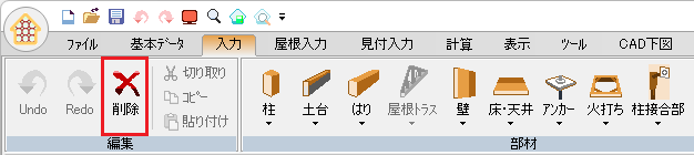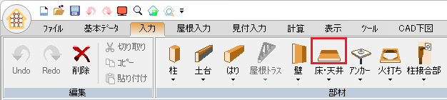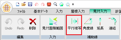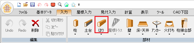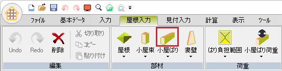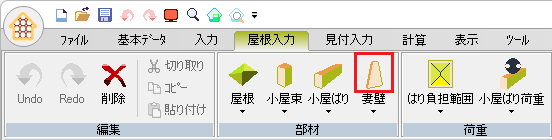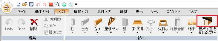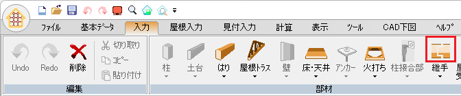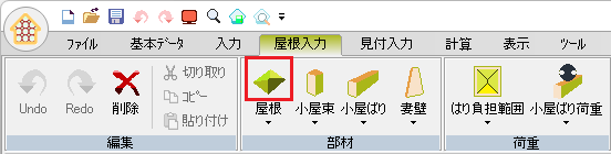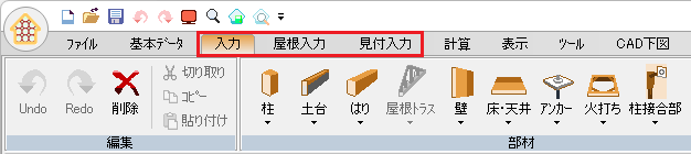 [入力][屋根入力][見付入力]メニューをクリックし、作業ウィンドウに表示する図を変更します。