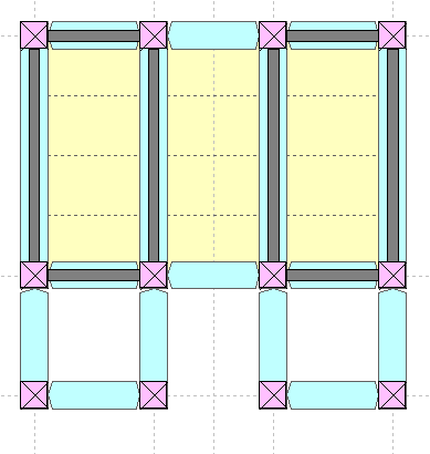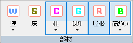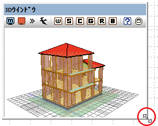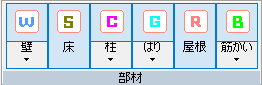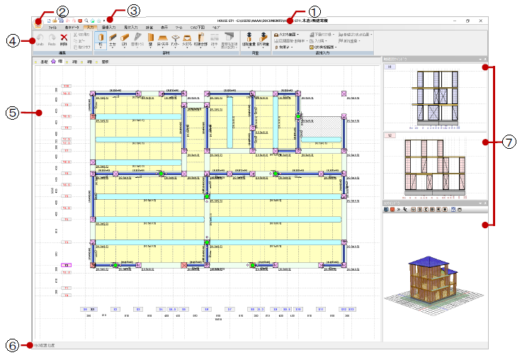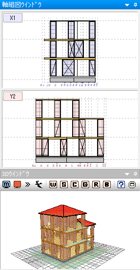 作業ウィンドウとは、平面部材(はり、柱、基礎など)、小屋組部材(小屋ばり、屋根など)、見付面積範囲を配置し、伏図、小屋伏図、見付面積図を書き込む作業エリアです。