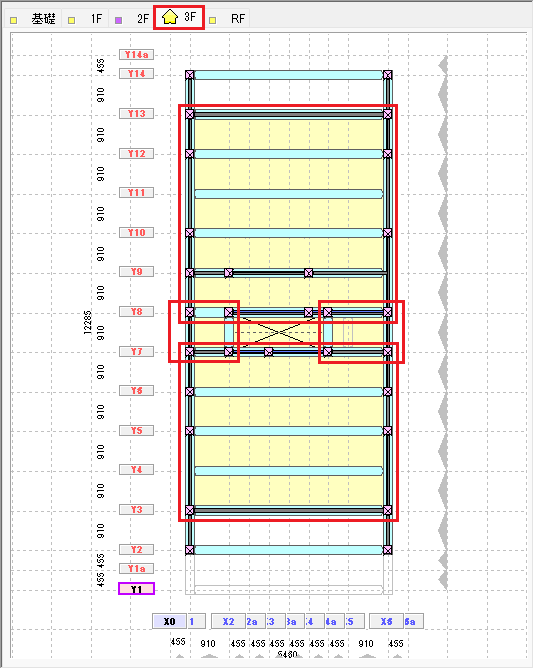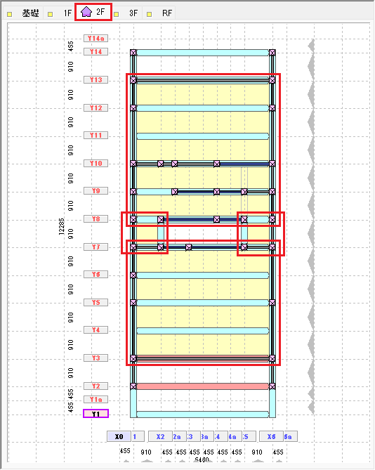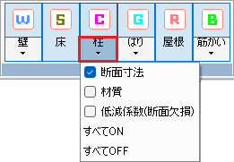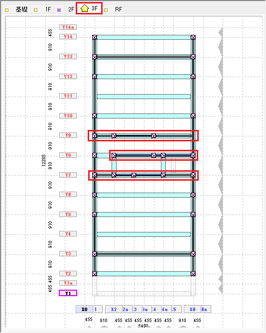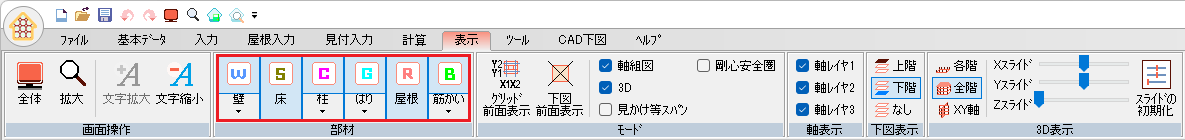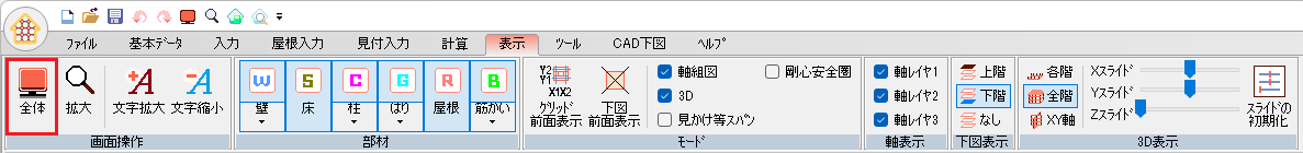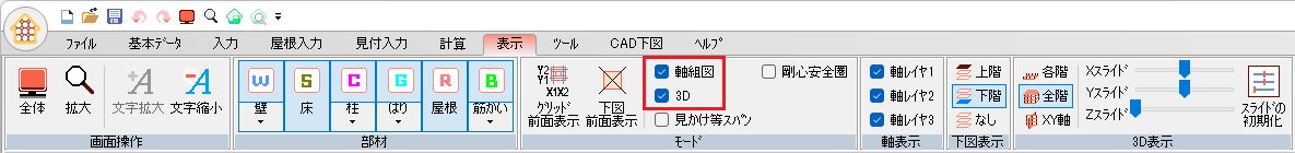 現在伏図に表示されている部材を軸組図や3Dモデルで表示します。