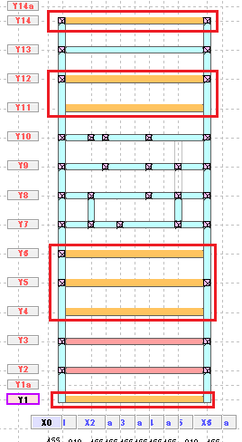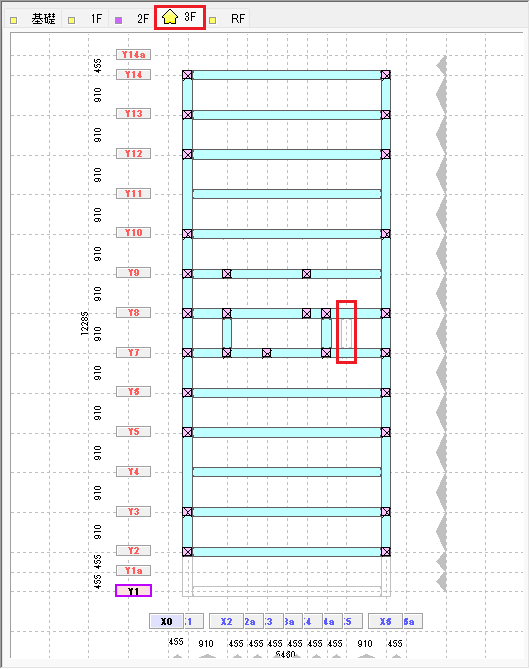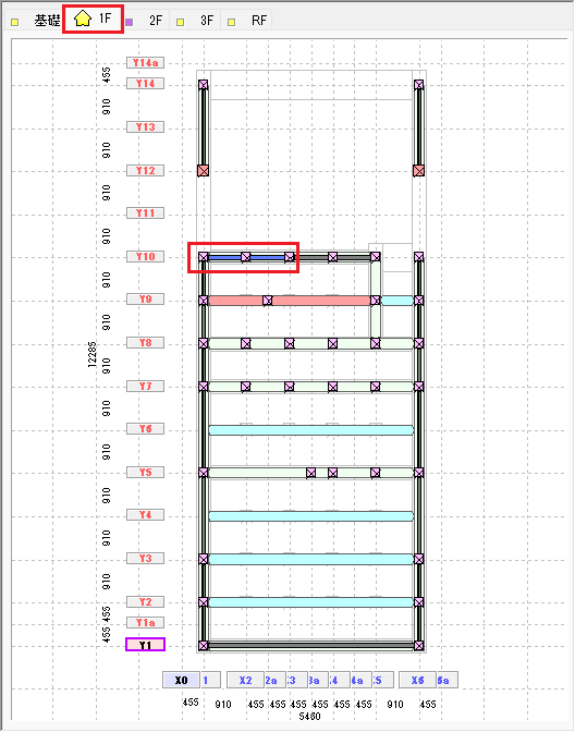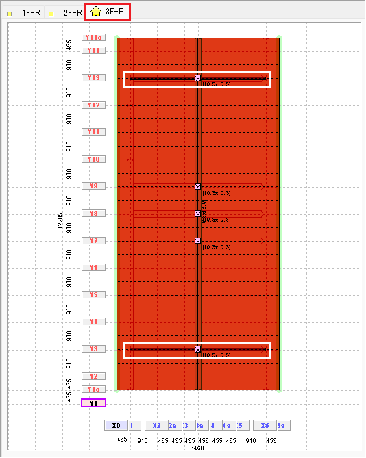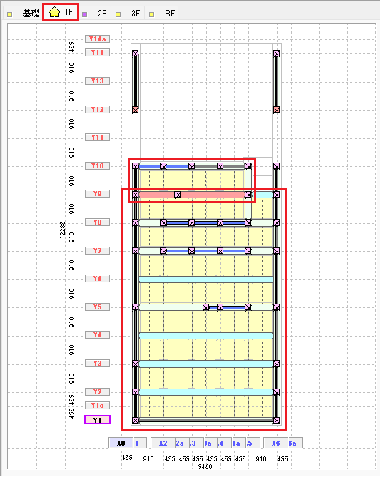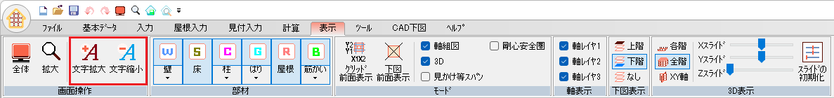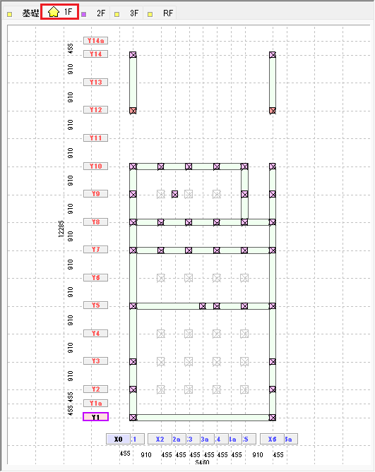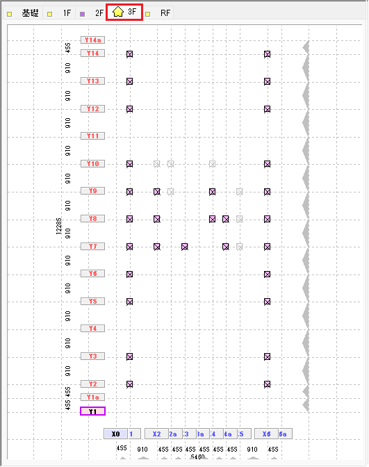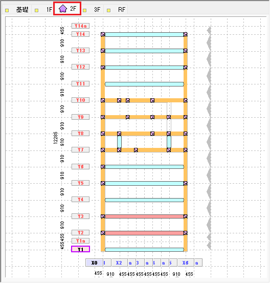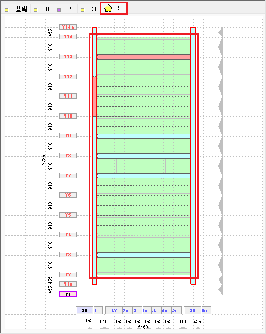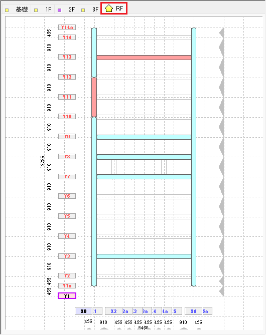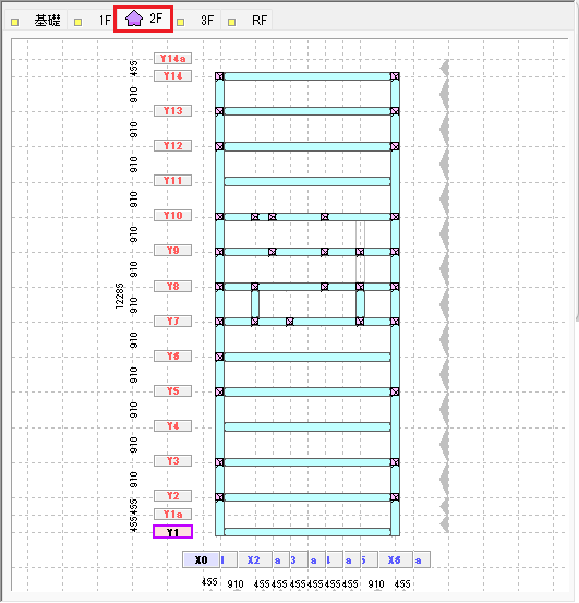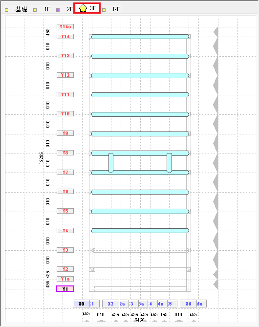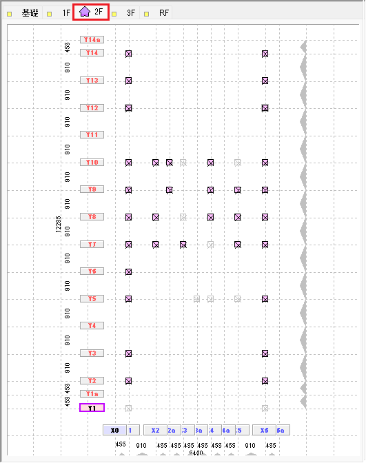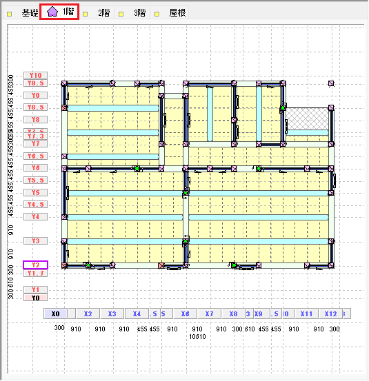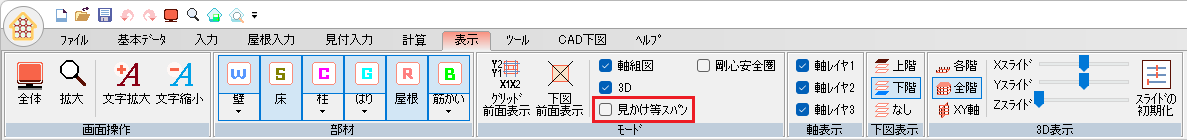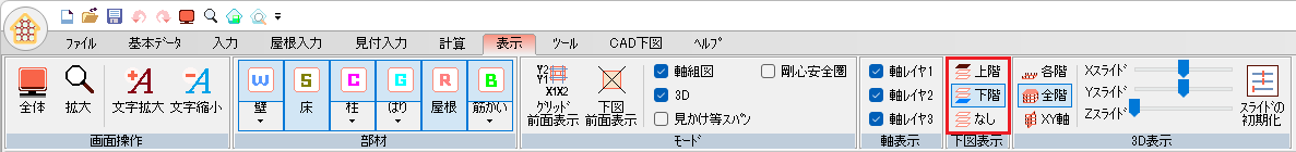 伏図、小屋伏図では、表示階(層)タブをクリックし、作業ウィンドウに表示する階(層)を選択できます。