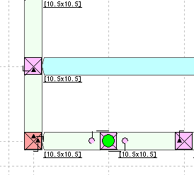 作業ウィンドウ上でメッセージ箇所が確認できる内容の場合、[NG表示]ダイアログのメッセージアイコンにマウスを移動するとマウスカーソルが変わります。アイコンをクリックすると該当する部材の表示色が変わり、メッセージウィンドウを表示します。