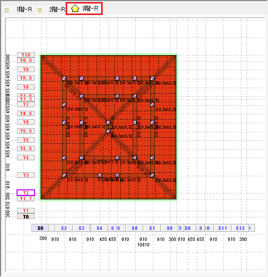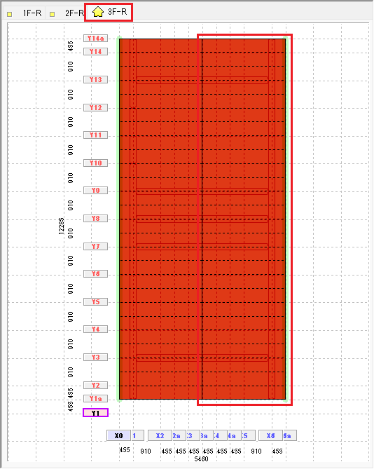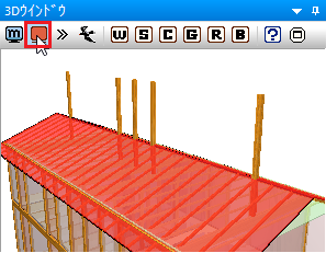 | [入力]メニューから[伏図-1階] | [屋根入力]メニューから[小屋伏図-3階-R] |
