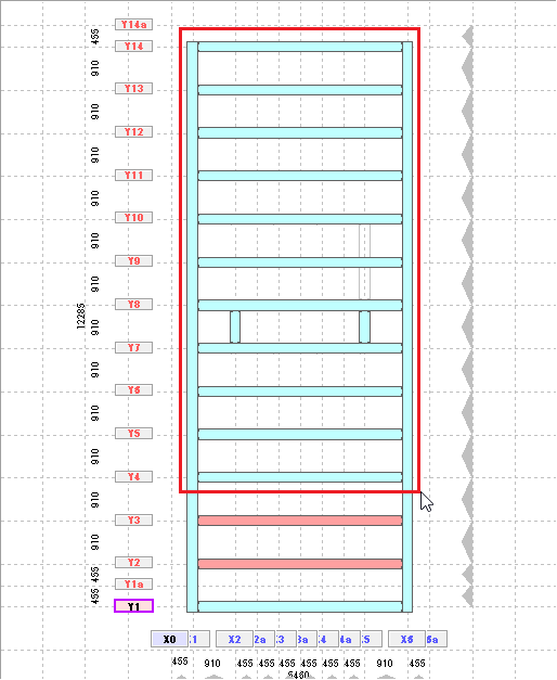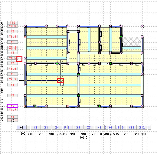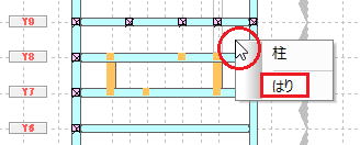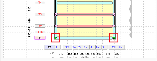| 基準線となるグリッドをクリックする | 次のグリッドをクリックする | 部材が複写される | ||