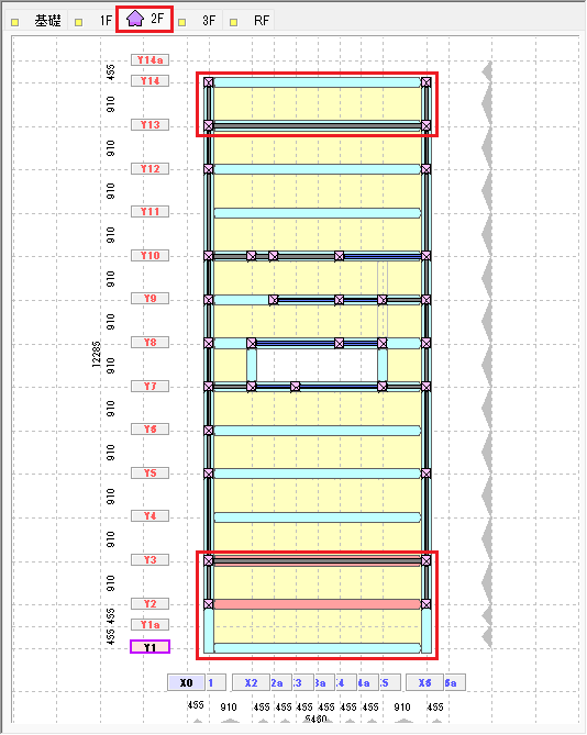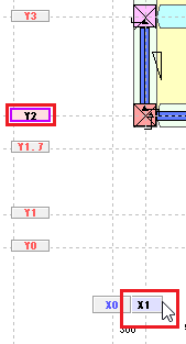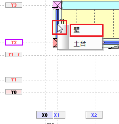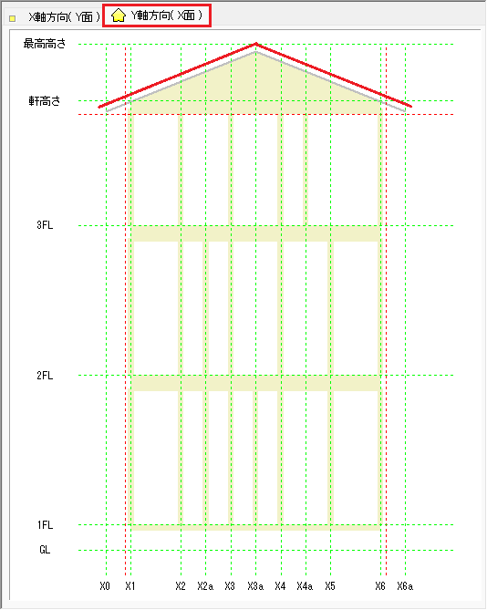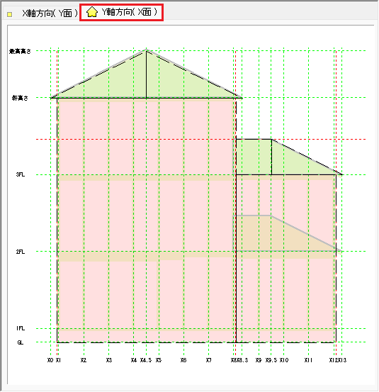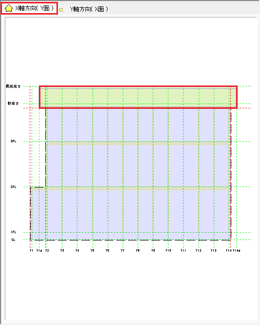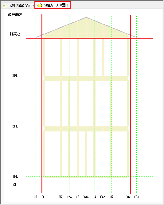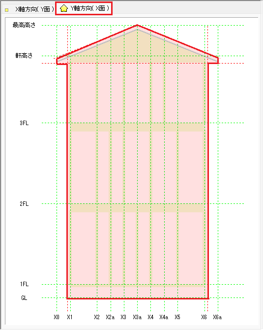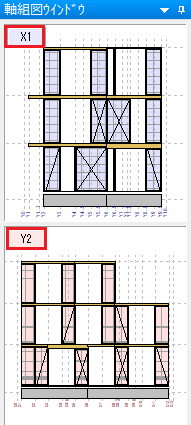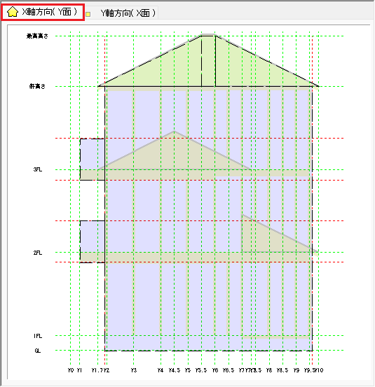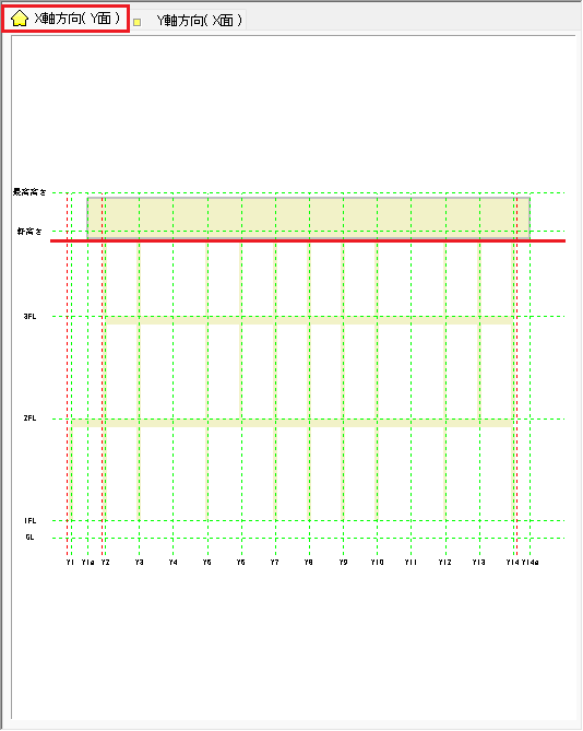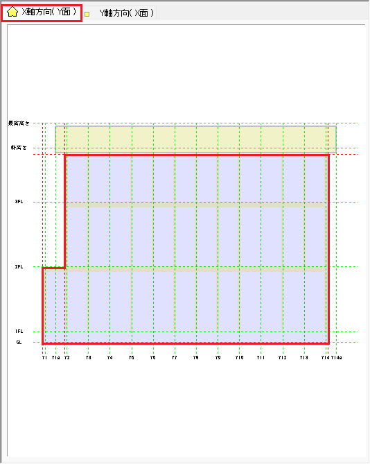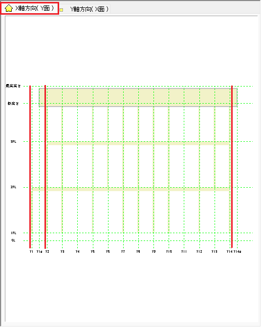 | [見付入力]メニューから[X軸方向(Y面)]タブ | [見付入力]メニューから[Y軸方向(X面)]タブ |