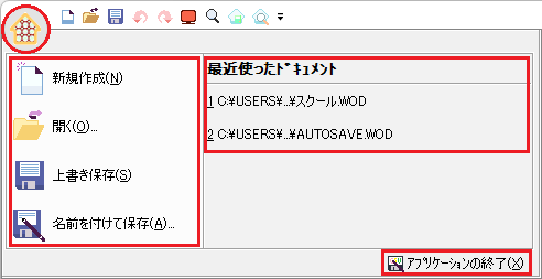 [新規作成][開く][上書き保存][名前を付けて保存]コマンドを実行できます。