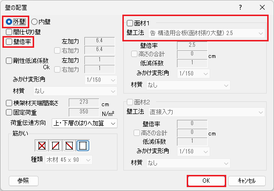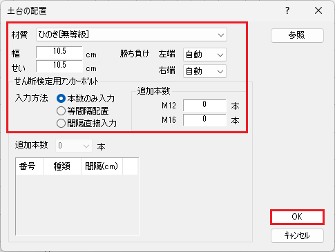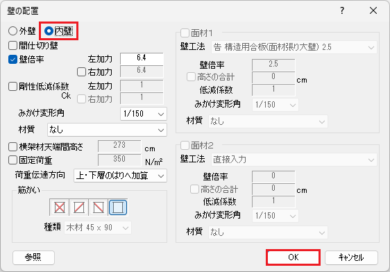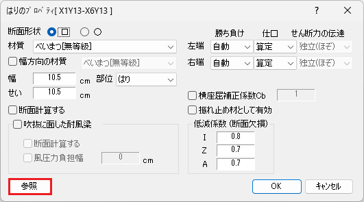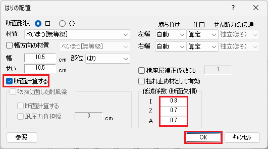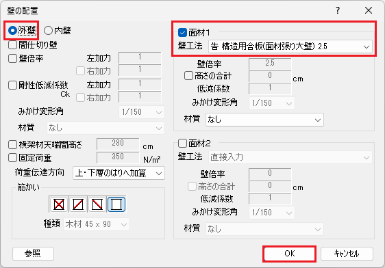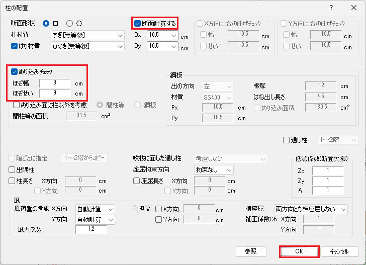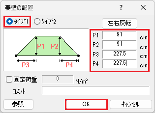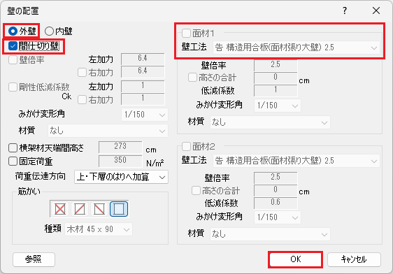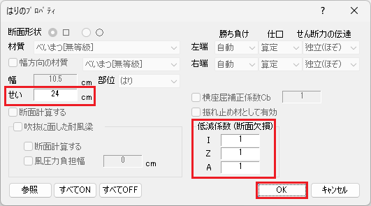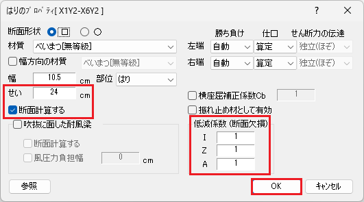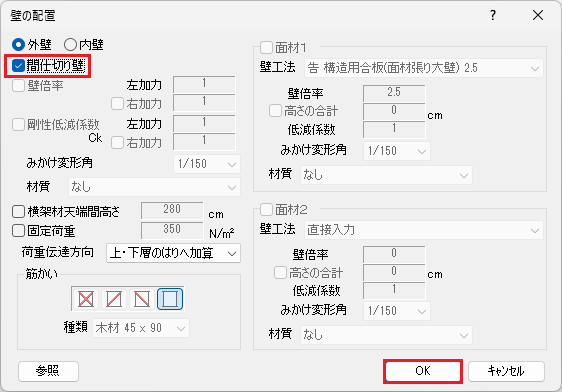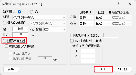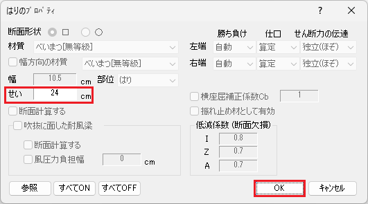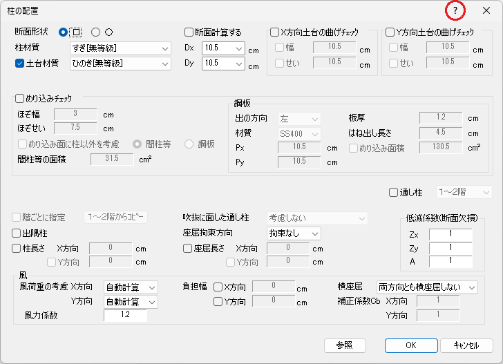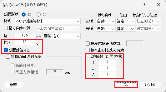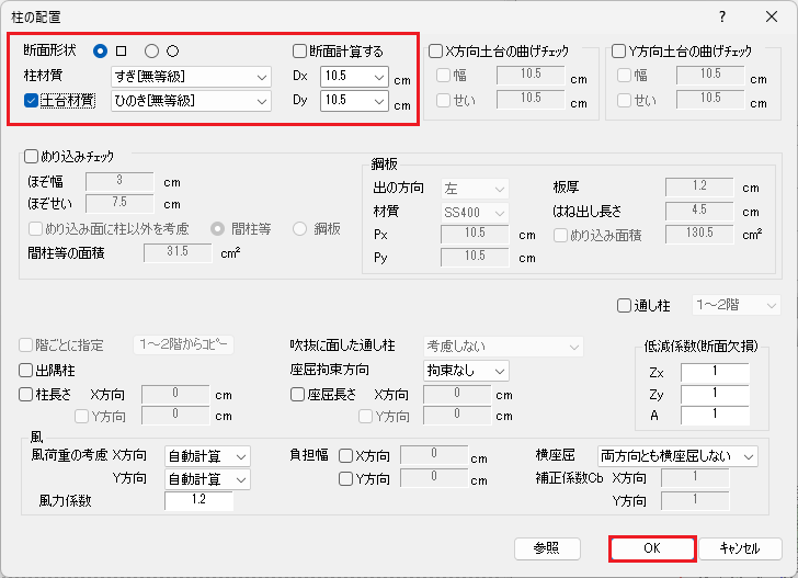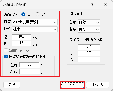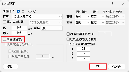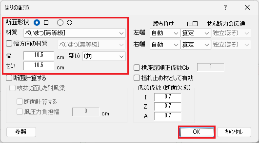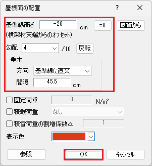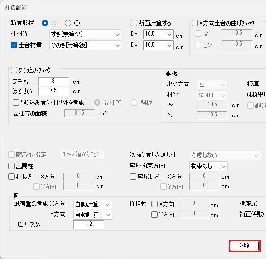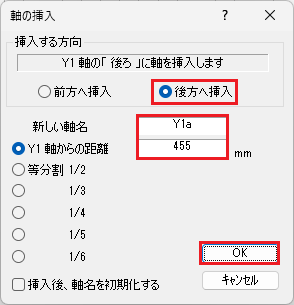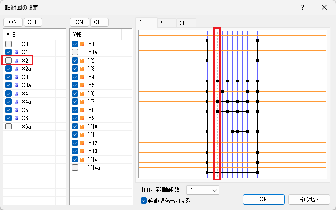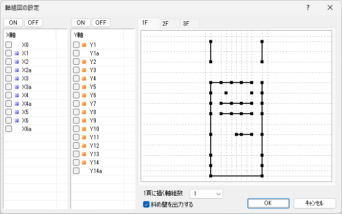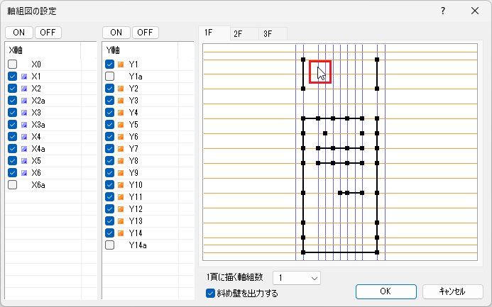 [軸組図の設定]ダイアログが表示されます。内容を確認しましょう。