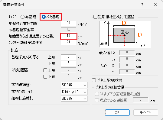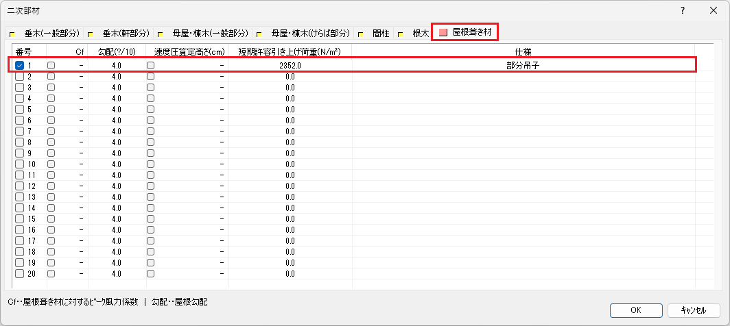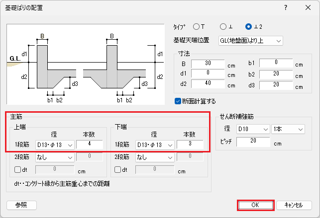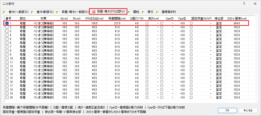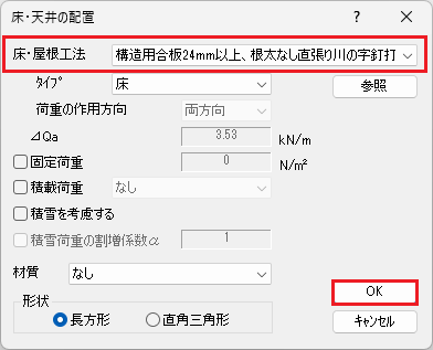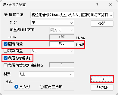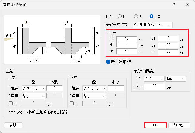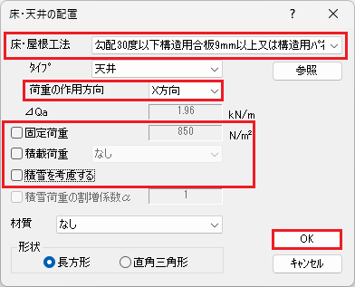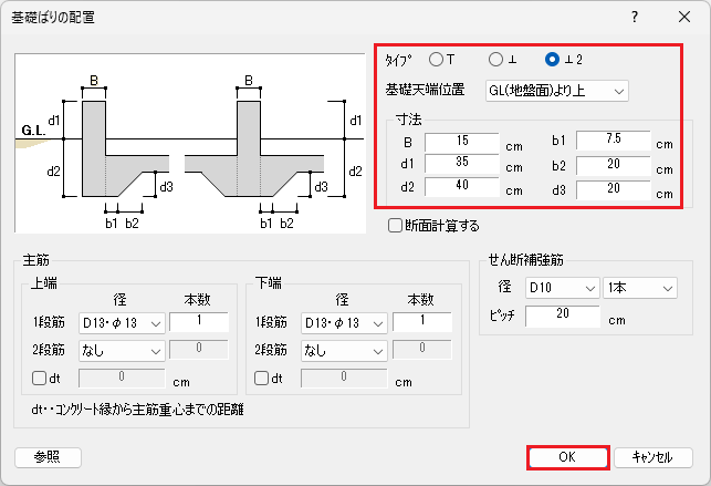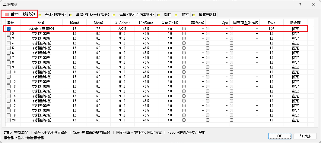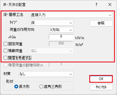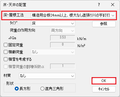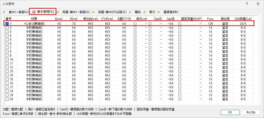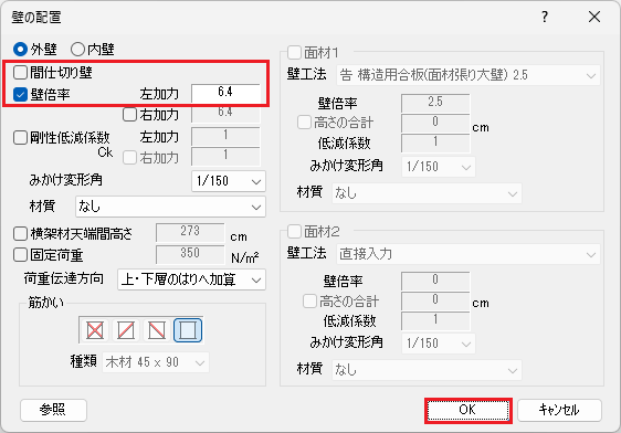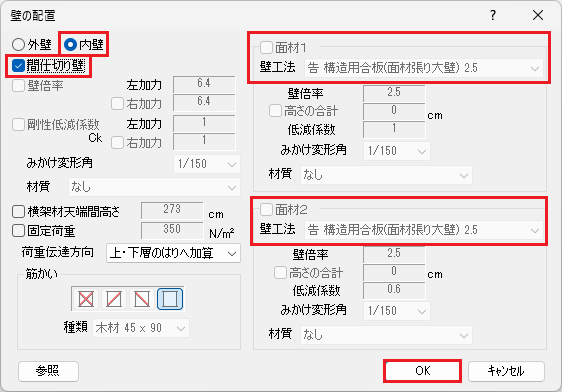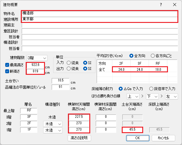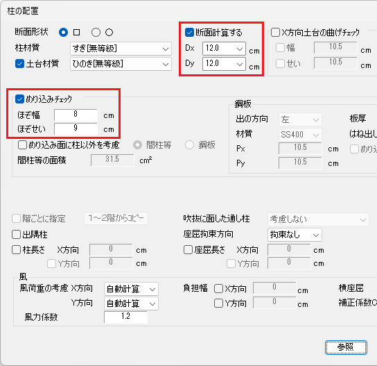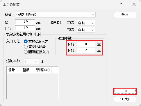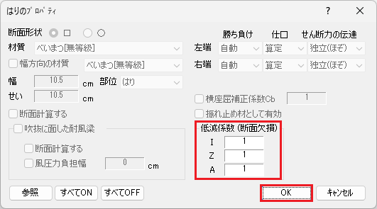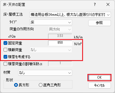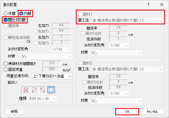 [軸組図の設定]ダイアログが表示されます。内容を確認しましょう。