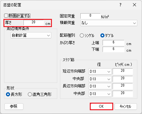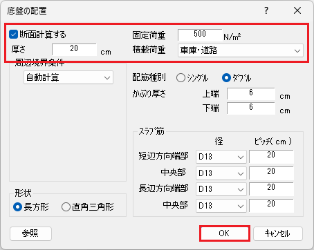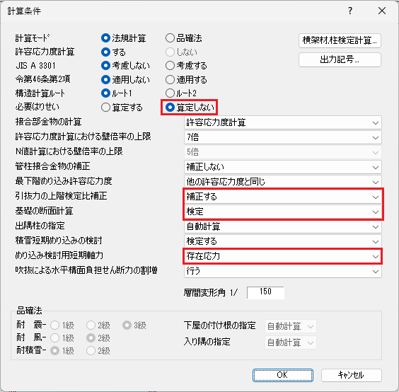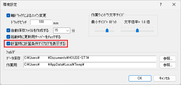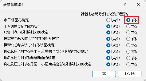 [計算実行]を選択した後に、[計算条件ダイアログ]を表示できます。