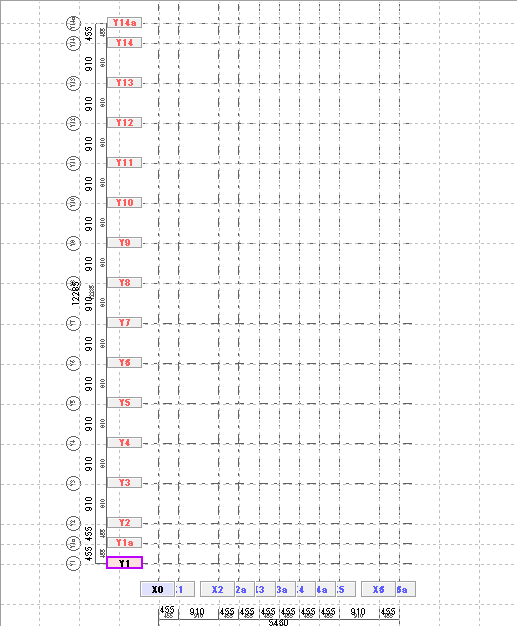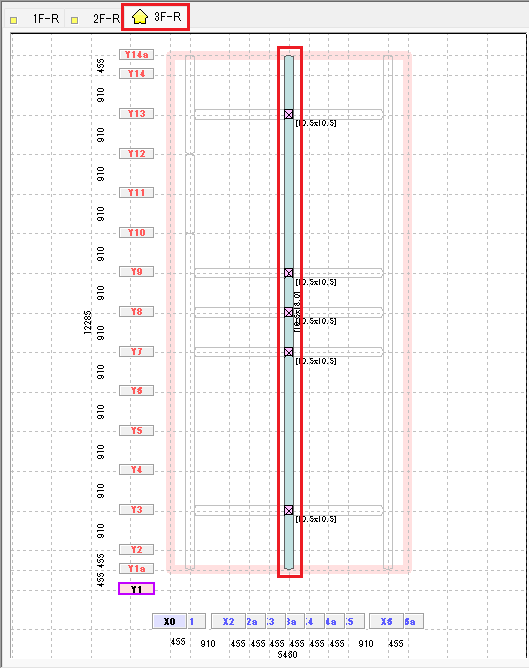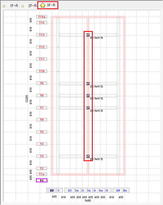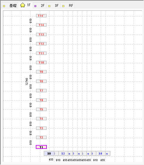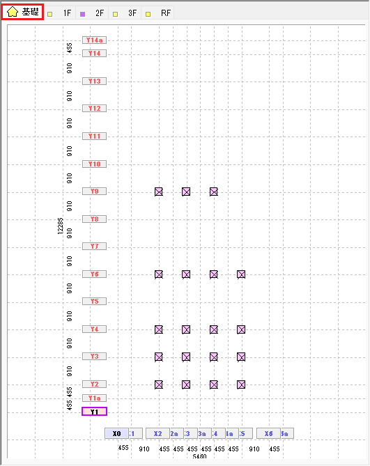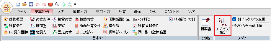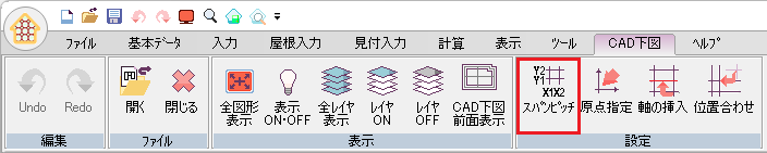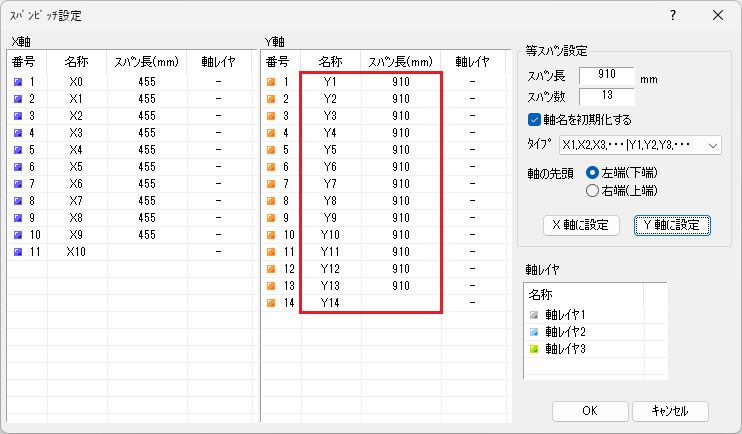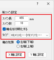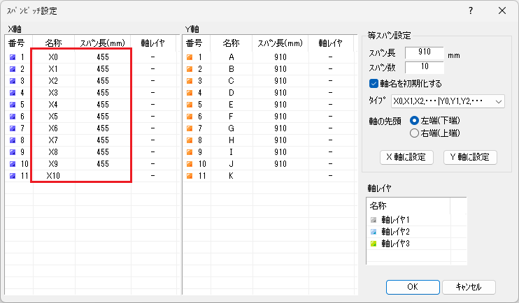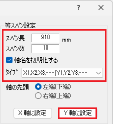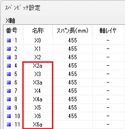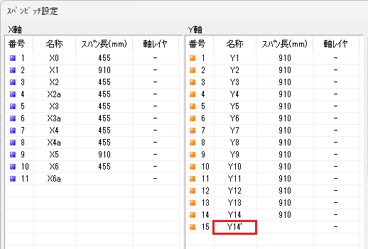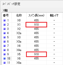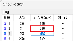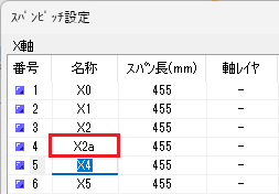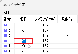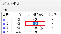 作業ウィンドウに読み込まれたスパンピッチと軸名称が表示されます。