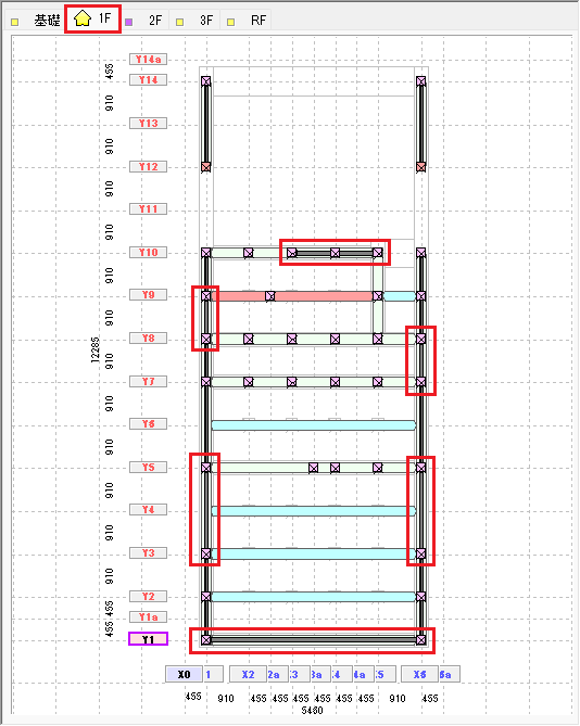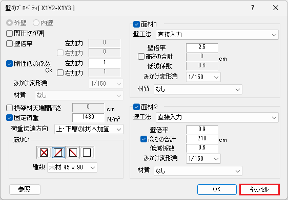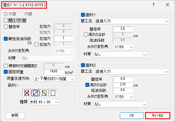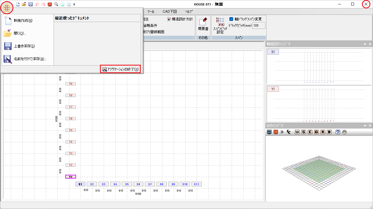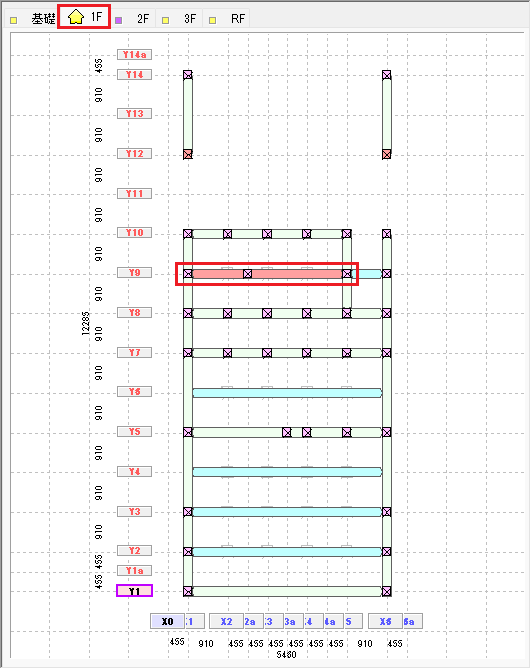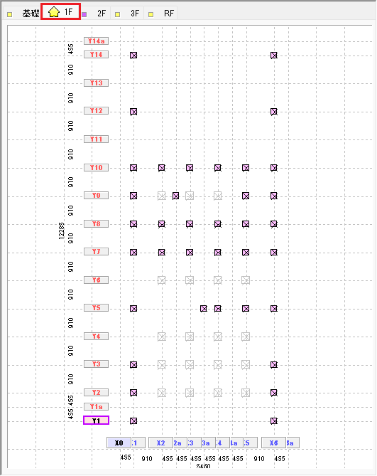 [軸組図の設定]ダイアログの[キャンセル]ボタンをクリックし、終了します。