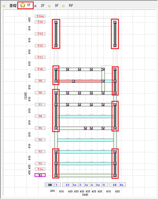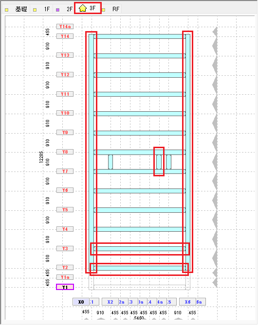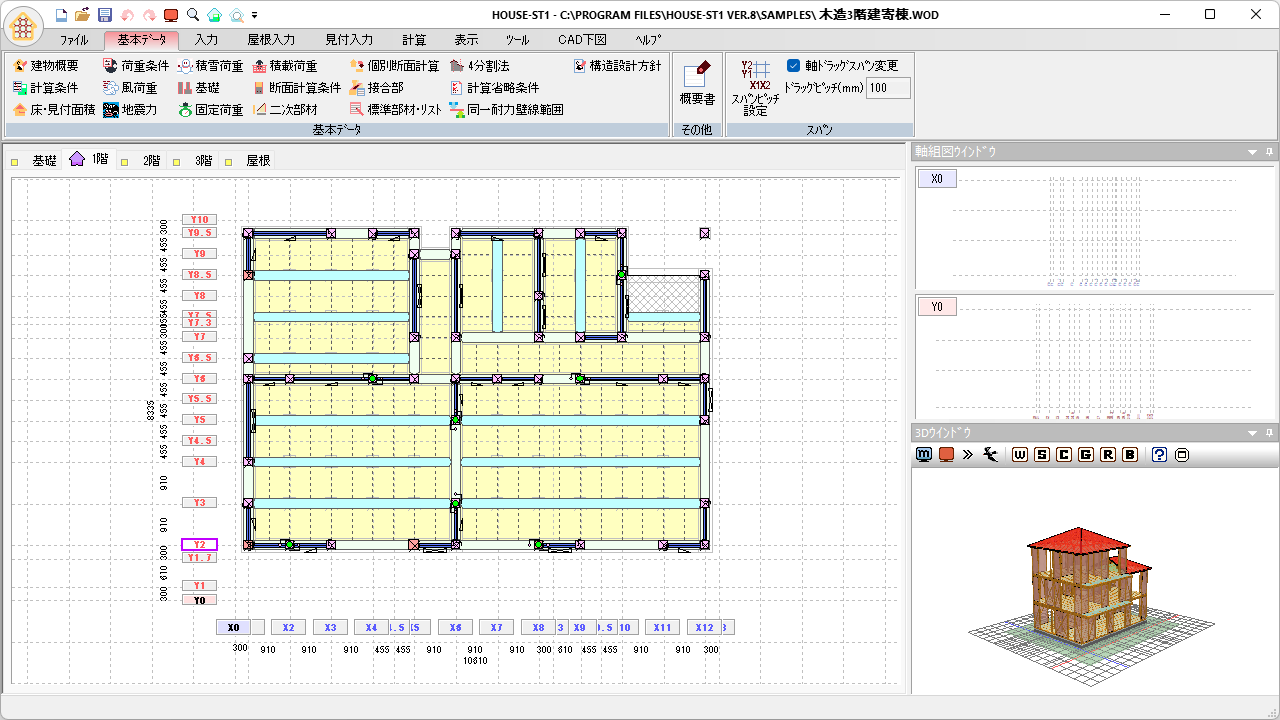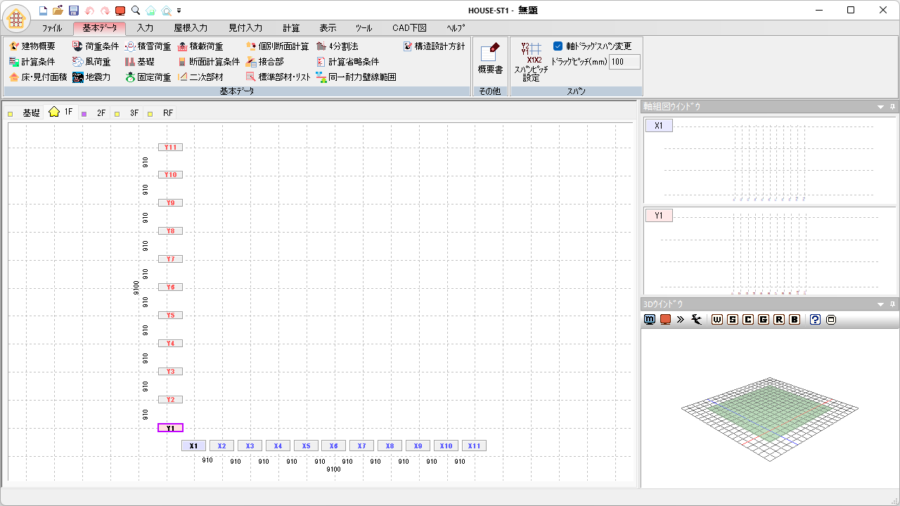読込んだ建物入力データが作業ウィンドウに表示されます。