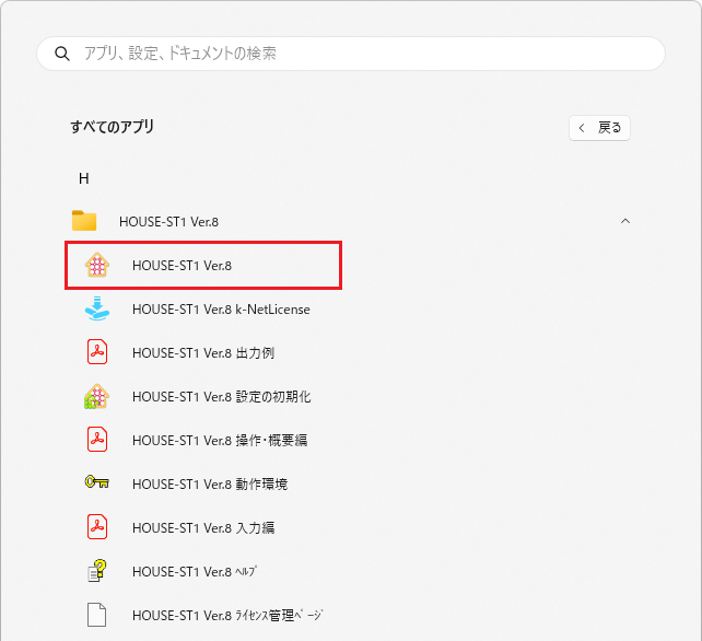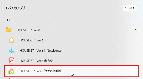 ※画面下部中央または左端の[スタート]ボタンをクリックし、[すべてのアプリ]→[HOUSE-ST1 Ver.8]→[HOUSE-ST1 Ver.8]からも起動できます。