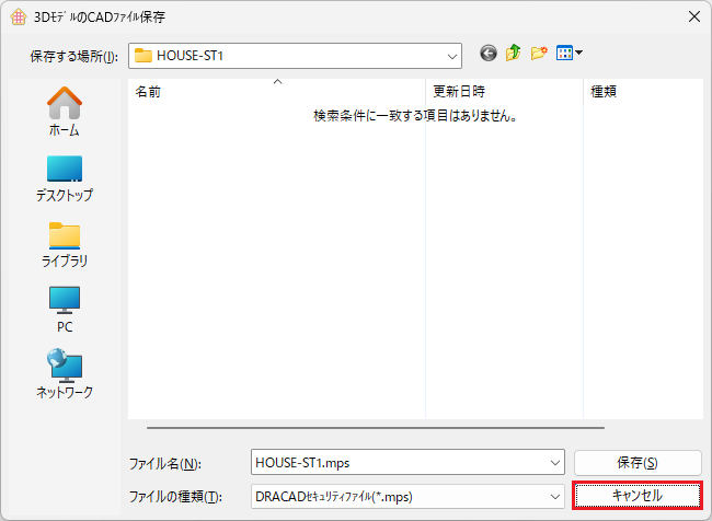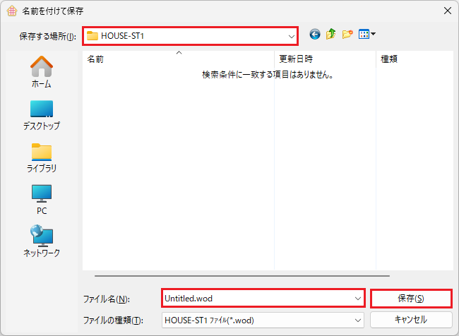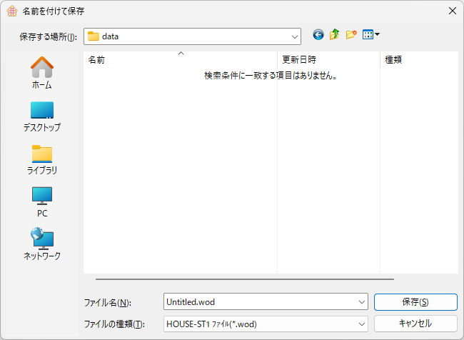 ※データを保存するドライブまたはフォルダは自動的にHOUSE-ST1データと同じドライブまたはフォルダになります。