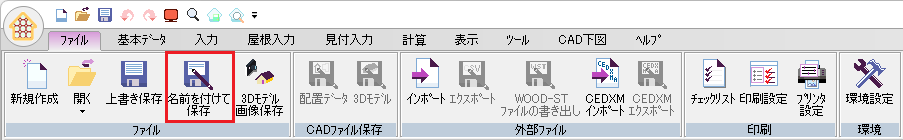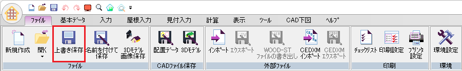 伏図、軸組図を分割出力している場合、または伏図、軸組図をA4横出力している場合は保存できません。