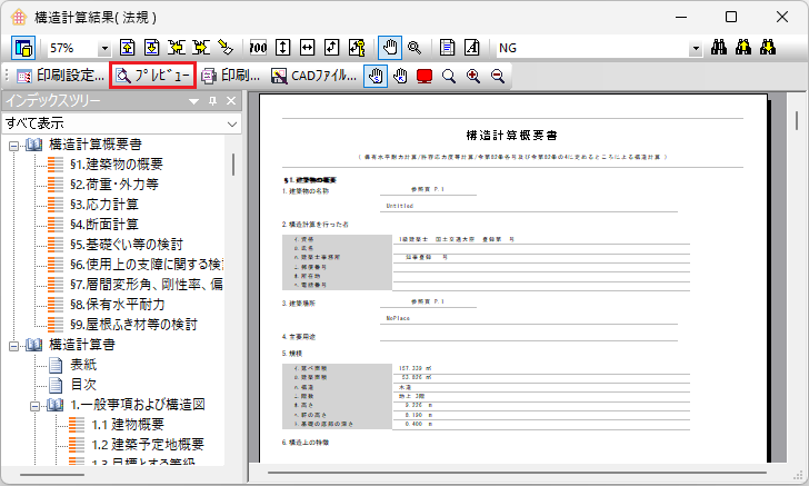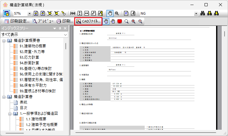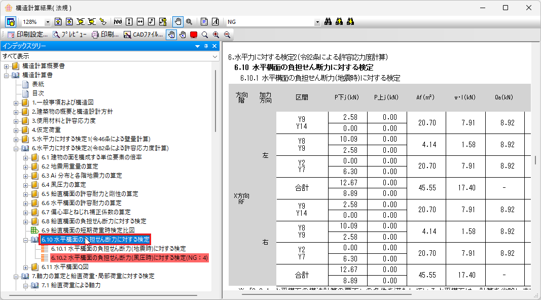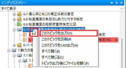 計算結果でNGがある項目は、ツリーメニュー上で赤く表示されます。