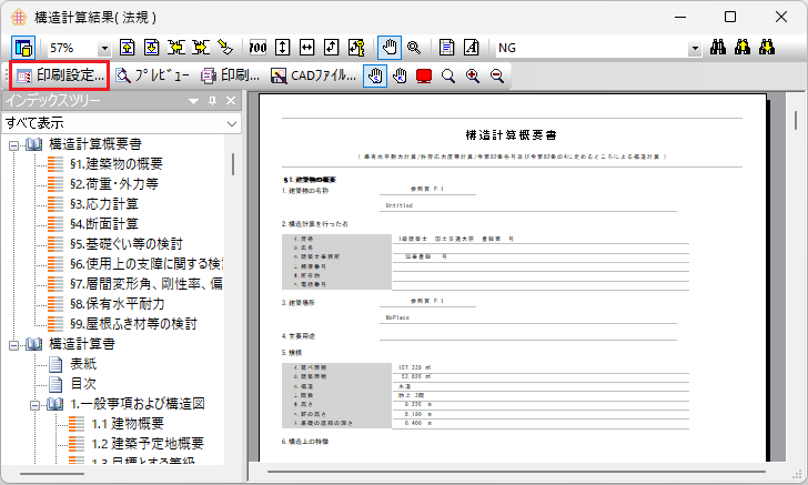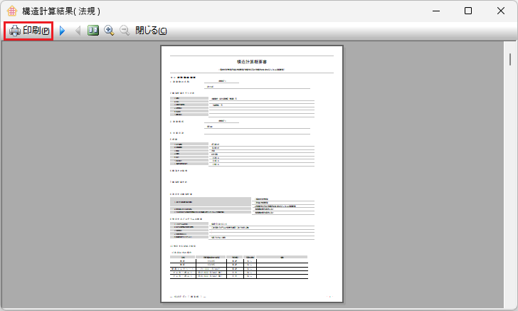 計算結果ウィンドウが表示されます。[印刷設定]ボタンをクリックします。