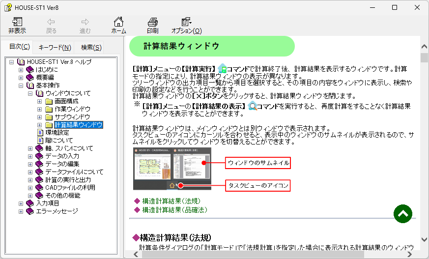 ※計算結果ウィンドウの各項目については、HOUSE-ST1 Ver.8 ヘルプの「計算結果ウィンドウ」をご確認ください。